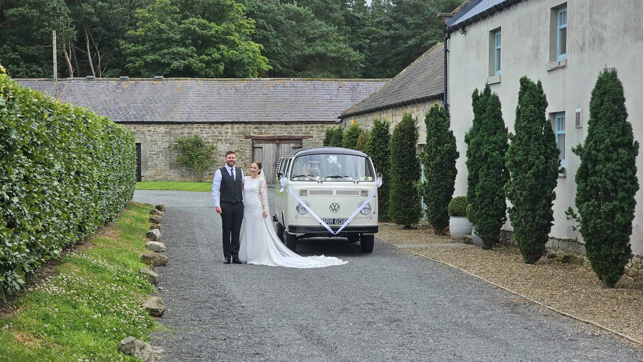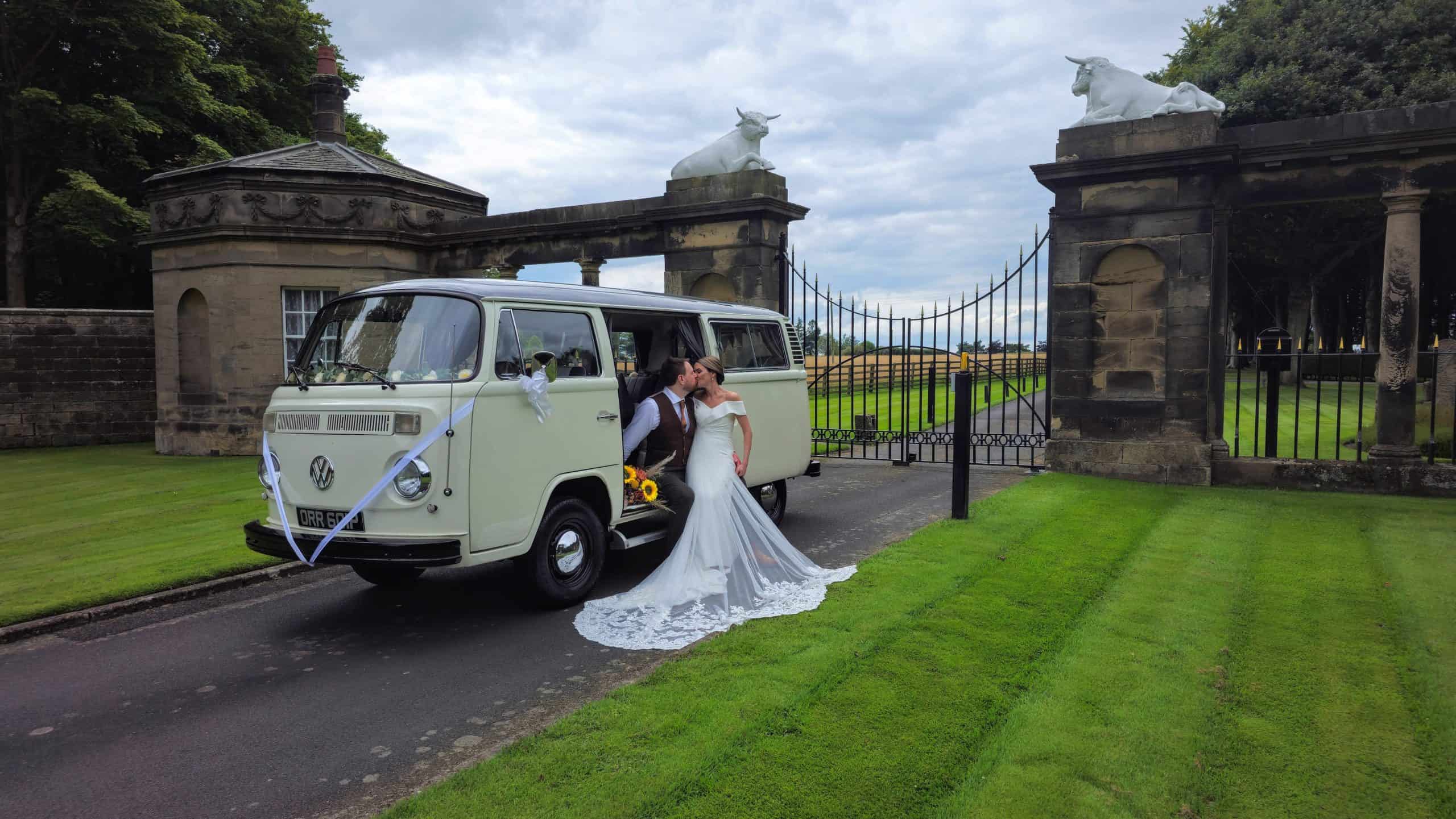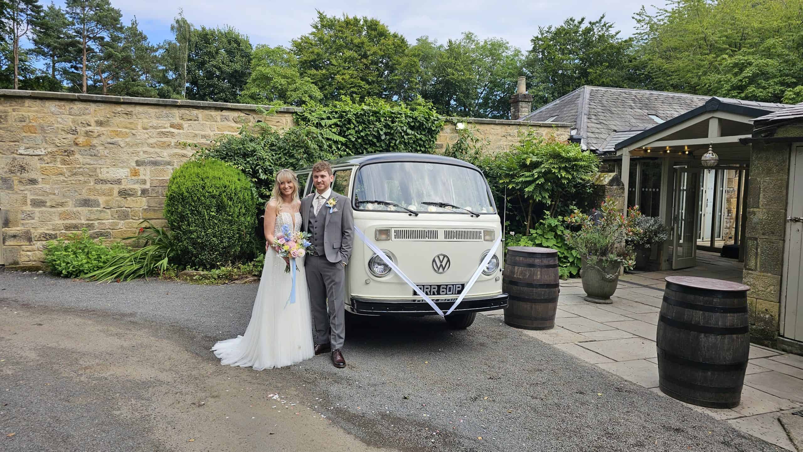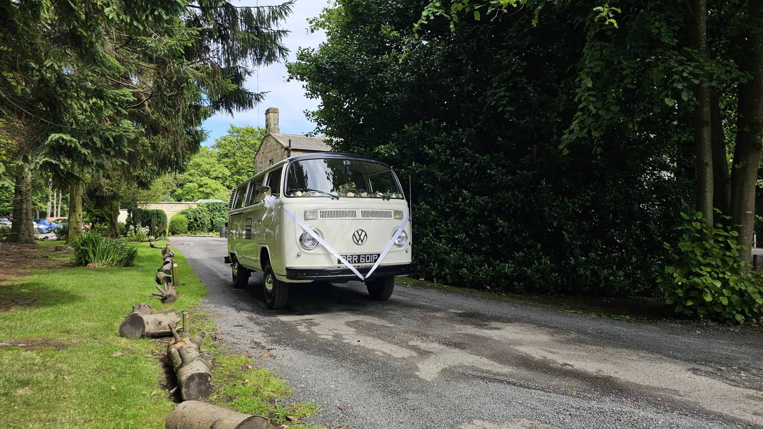 The wedding transport for the bridal party was a beloved vintage 1976 VW Campervan, which added a distinct, cheerful flair to the day. The van collected the bride and her party from the Holiday Inn in Boldon.