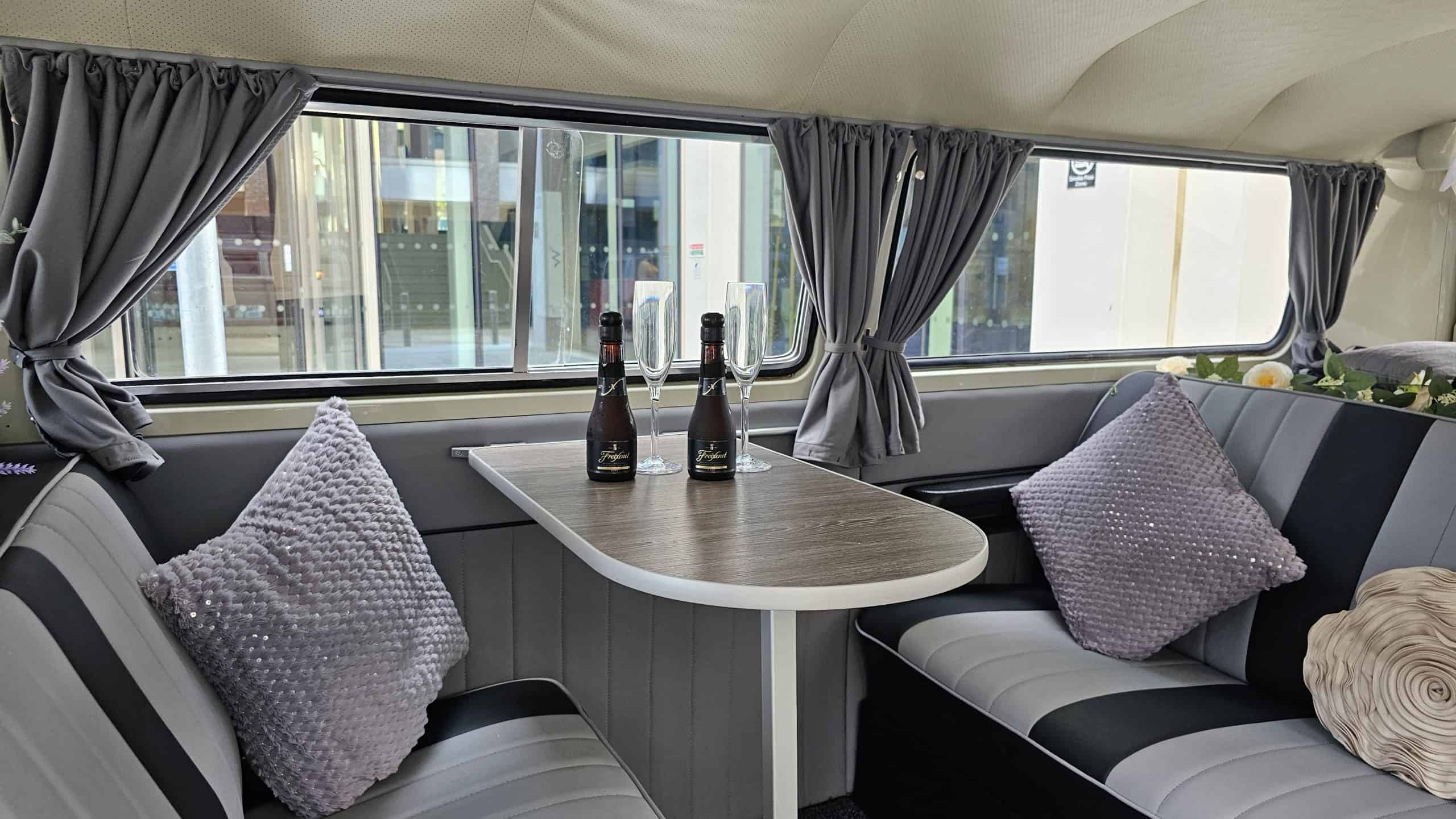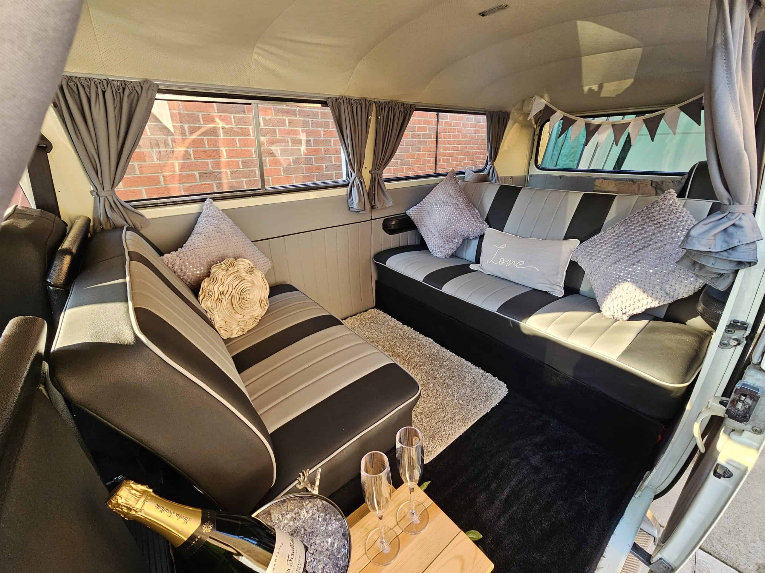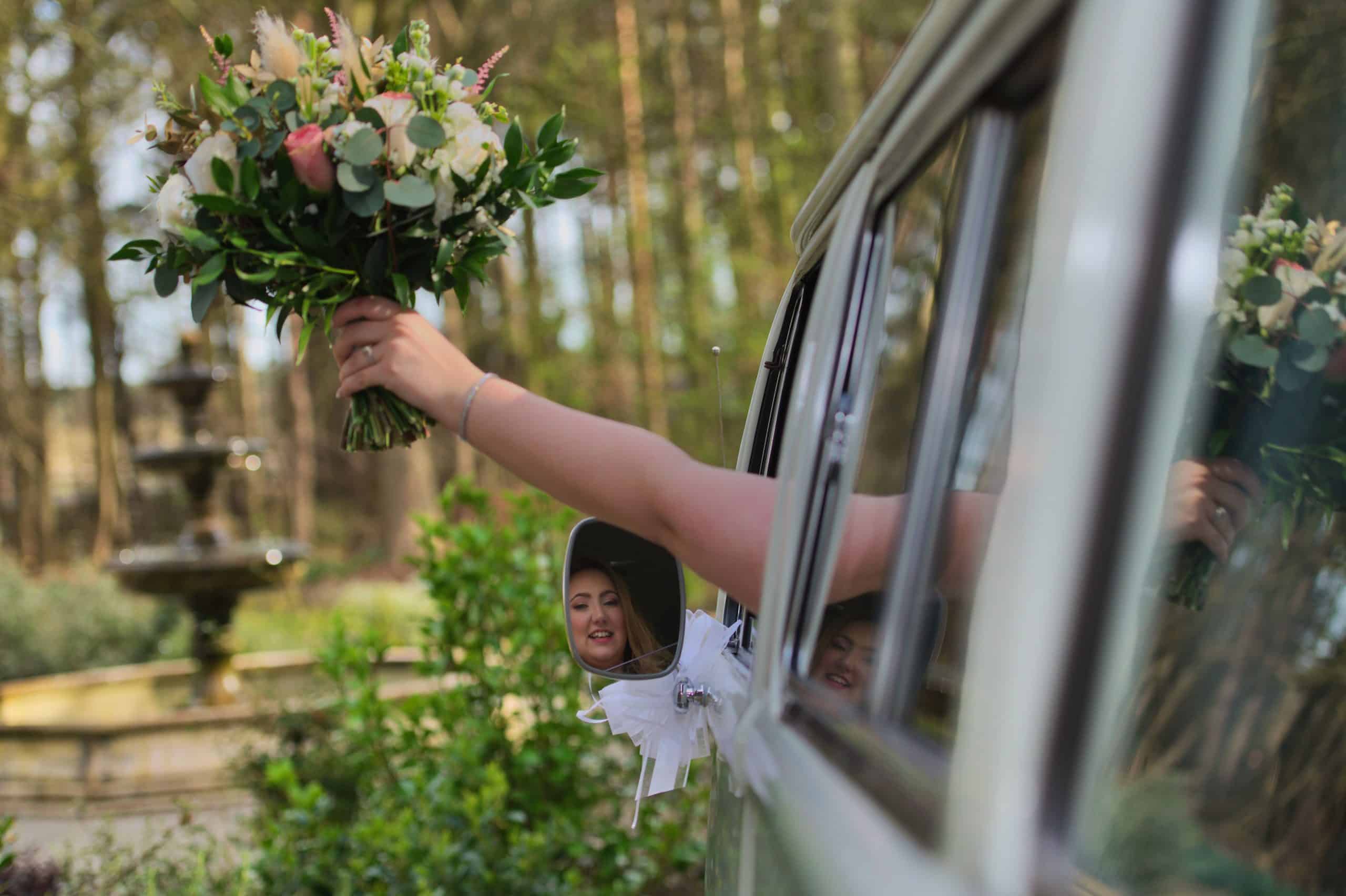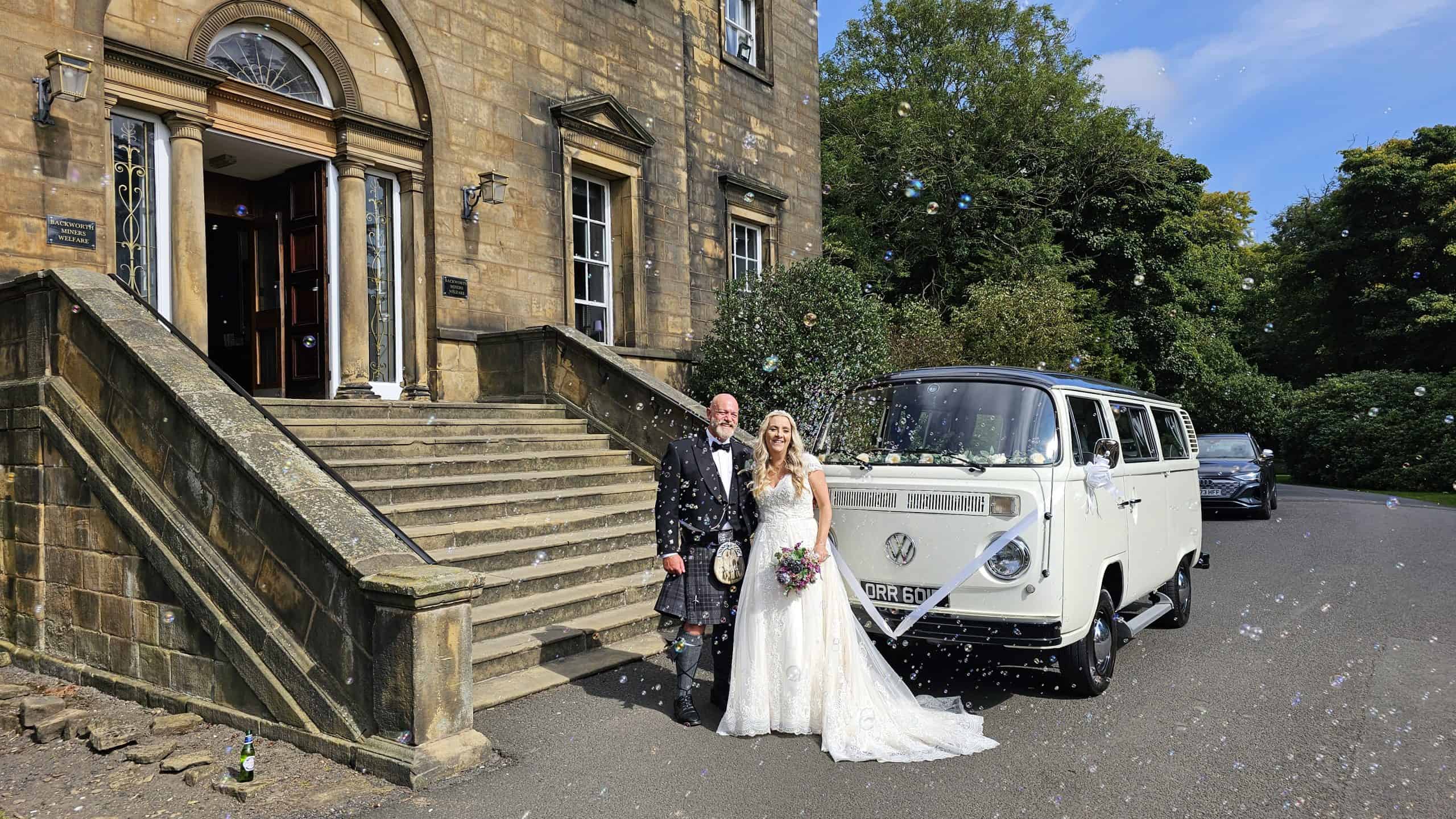The wedding transport for the bridal party was a beloved vintage 1976 VW Campervan, which added a distinct, cheerful flair to the day. The van collected the bride and her party from the Holiday Inn in Boldon.
