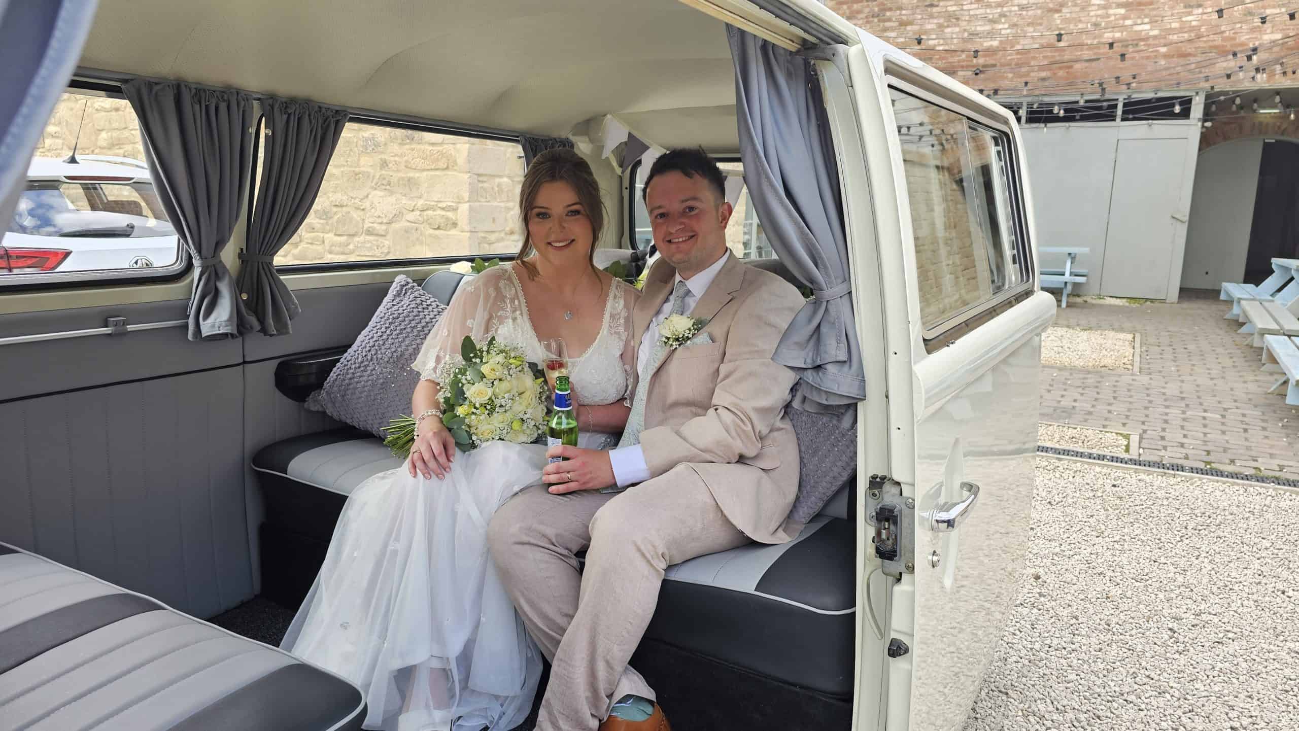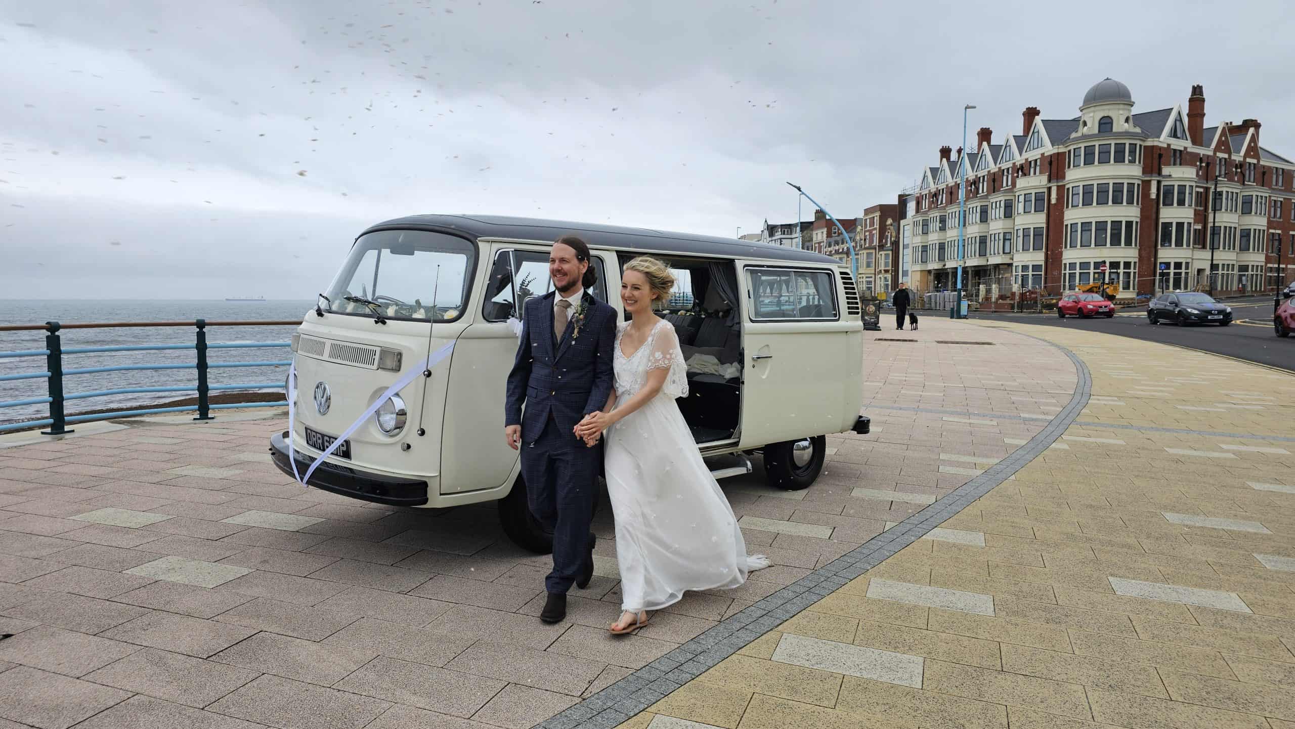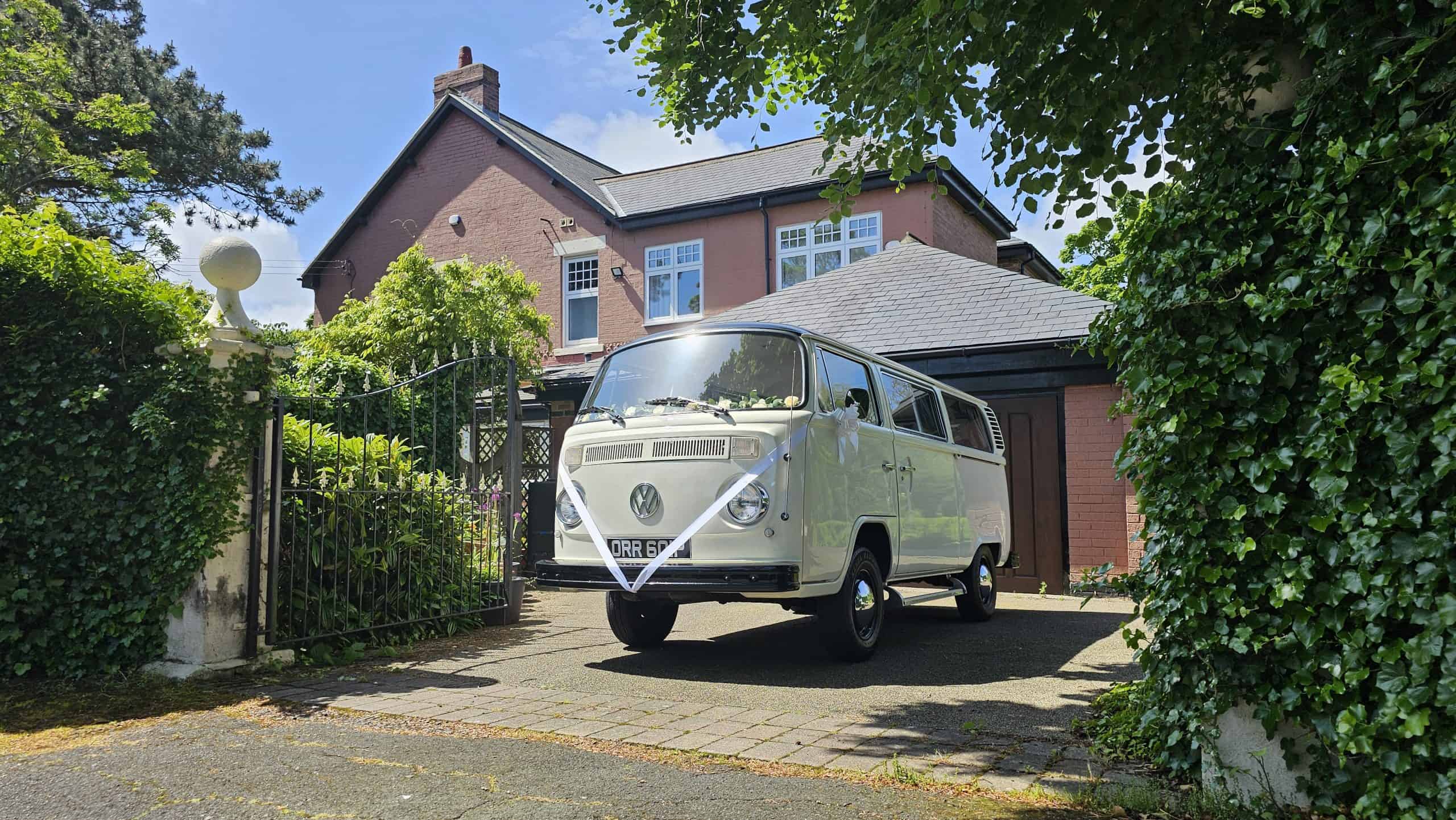The couple utilized the iconic Campervan for multiple trips, thoughtfully transporting not only the bridal party but also many of their wedding guests from South Shields across to the Sunderland venue. The VW's continuous journeys ensured a communal and cheerful start to the day's proceedings.