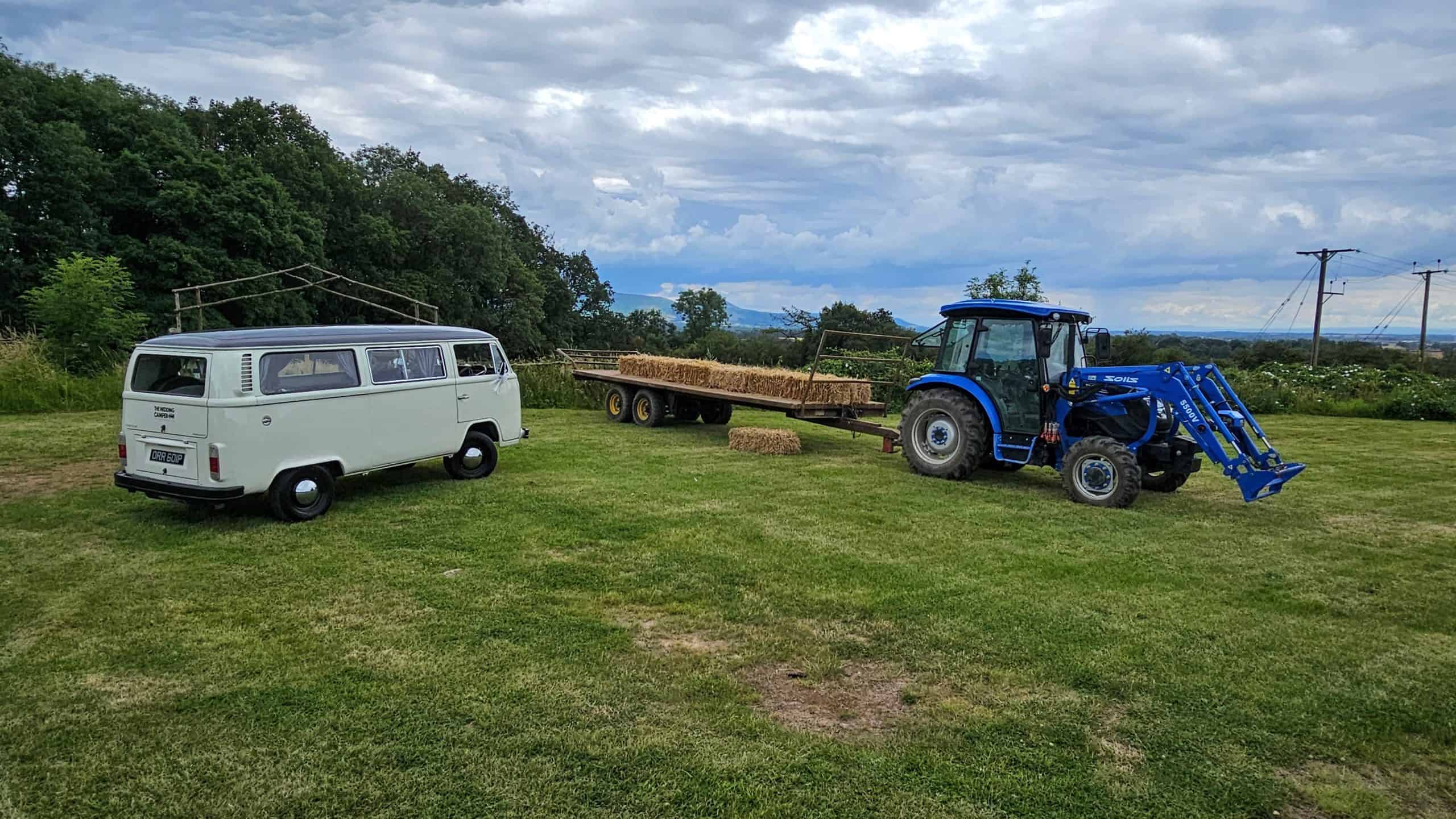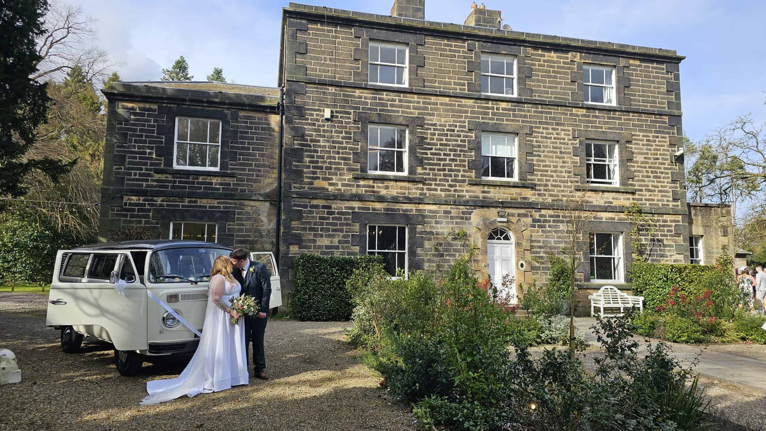 With good weather on their side, the day was lively, and thanks to other events taking place at the Sheepfolds Stables, the wedding transport gathered a huge amount of attention. Both the classic VW and the contemporary Chrysler drew admiring glances from passers-by and attendees, adding to the celebratory atmosphere.